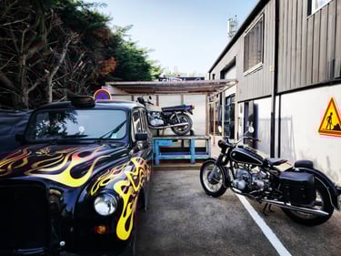 Retrouvez notre univers unique dans un garage des années 50.